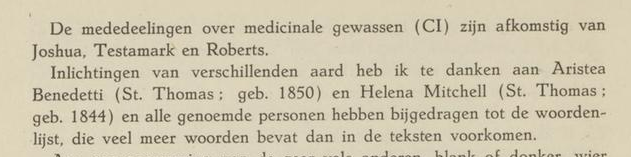[1] De Josselin de Jong (1926: 8): ‘Inlichtingen van verschillenden aard heb ik te danken aan Aristea Benedetti (St. Thomas; geb. 1850) (…)’.