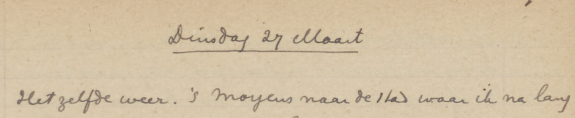 De tekst is (voorlopig) zonder aanpassingen genoteerd en laten dus de taal en de opvattingen zien zoals die aan het begin van de twintigste eeuw gewoon waren. Verschillende pagina’s van dit dagboek zijn inclusief aanvullend materiaal door mij voorgelezen in de podcast Di hou creol en de desbetreffende afleveringen zijn via deze website natuurlijk nog te beluisteren en te bekijken.