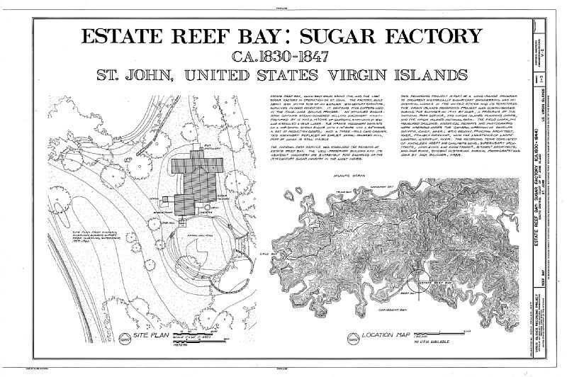Via Wikimedia Commons: Estate Reef Bay, Sugar Factory, Title Sheet – Estate Reef Bay, Sugar Factory, Reef Bay, St. John, VI, by Hugh Fraser.