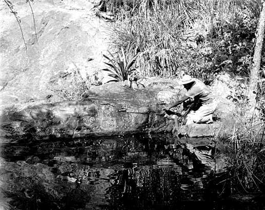 Via Wikimedia Commons: Jack E. Boucher, Native examining petroglyphs at St. Johns near Reef Bay. Virgin Islands National Park, 1960.