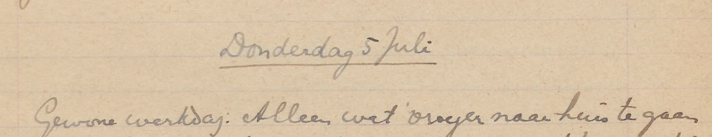 Gewone werkdag. Alleen wat vroeger naar huis te gaan om een bezoek te brengen aan den agent v.d. Kwim. Hij zal trachten passagiers te werven voor den 25en en als dat lukt een boot voor dien datum aanvragen. Als regel moet er f 300 betaald worden of te wel 12 eerste-klasse-passagiers. Den avond doorgebracht bij de familie Kwast waar ik ook den dominee aantrof.