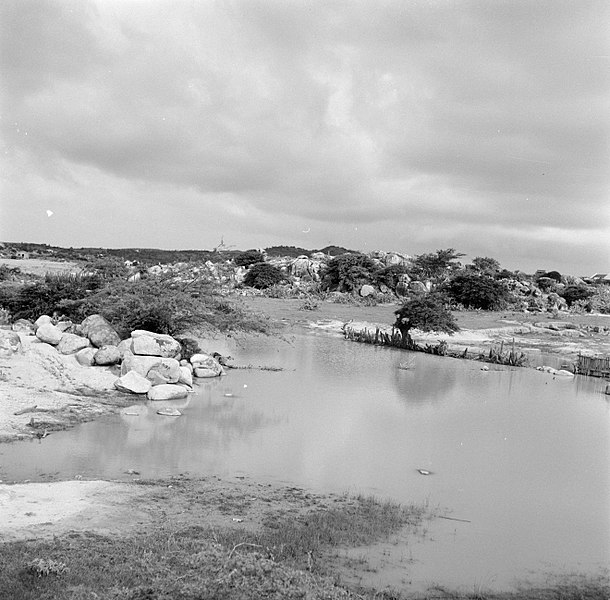 Via Wikimedia Commons: Landschap met rotspartijen bij Ajo op Aruba, 1 oktober 1955, Nationaal Archief, Willem van de Poll.