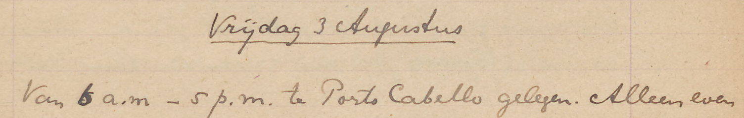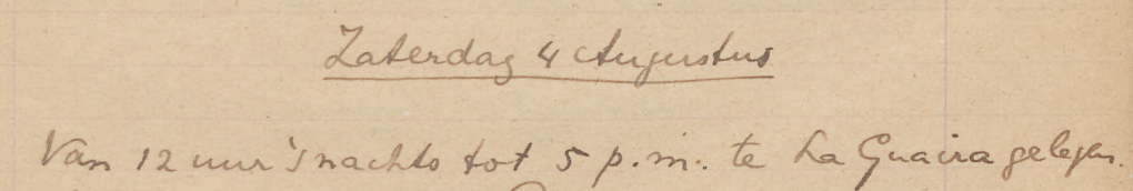 Van 12 uur ’s nachts tot 5 p.m. te La Guaira gelegen Niet aan wal geweest. Prachtig weer.